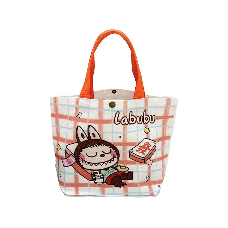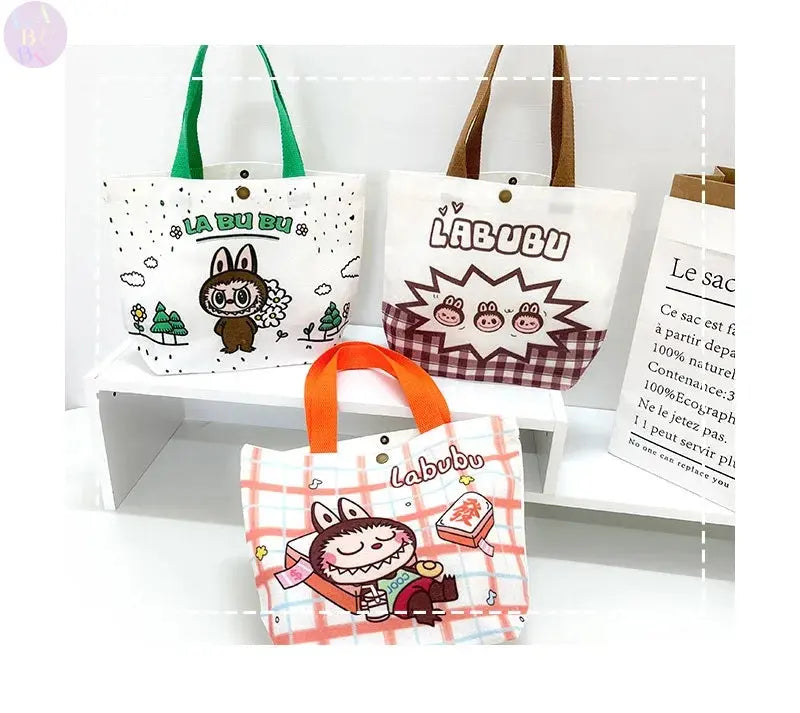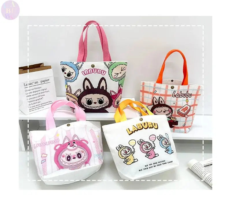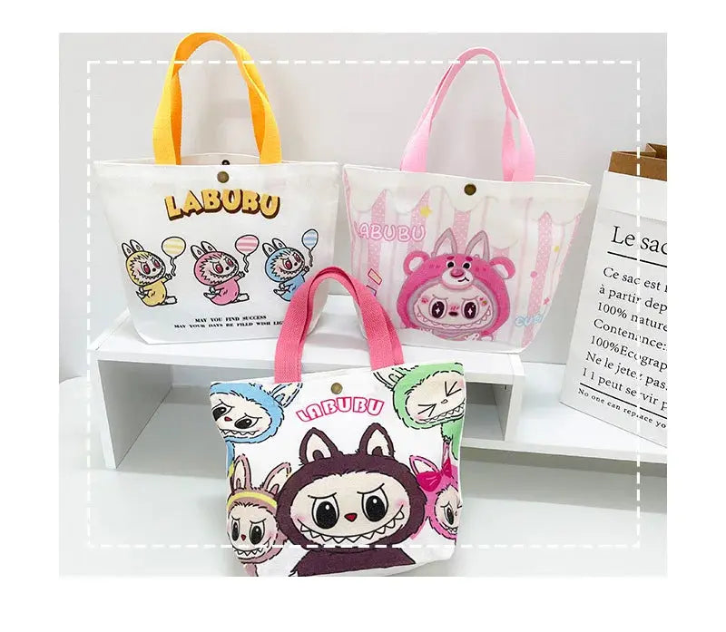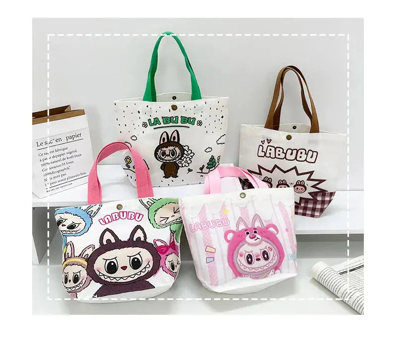 👜 Labubu Canvas Tote Bag – Cartoon Chic at Your Fingertips